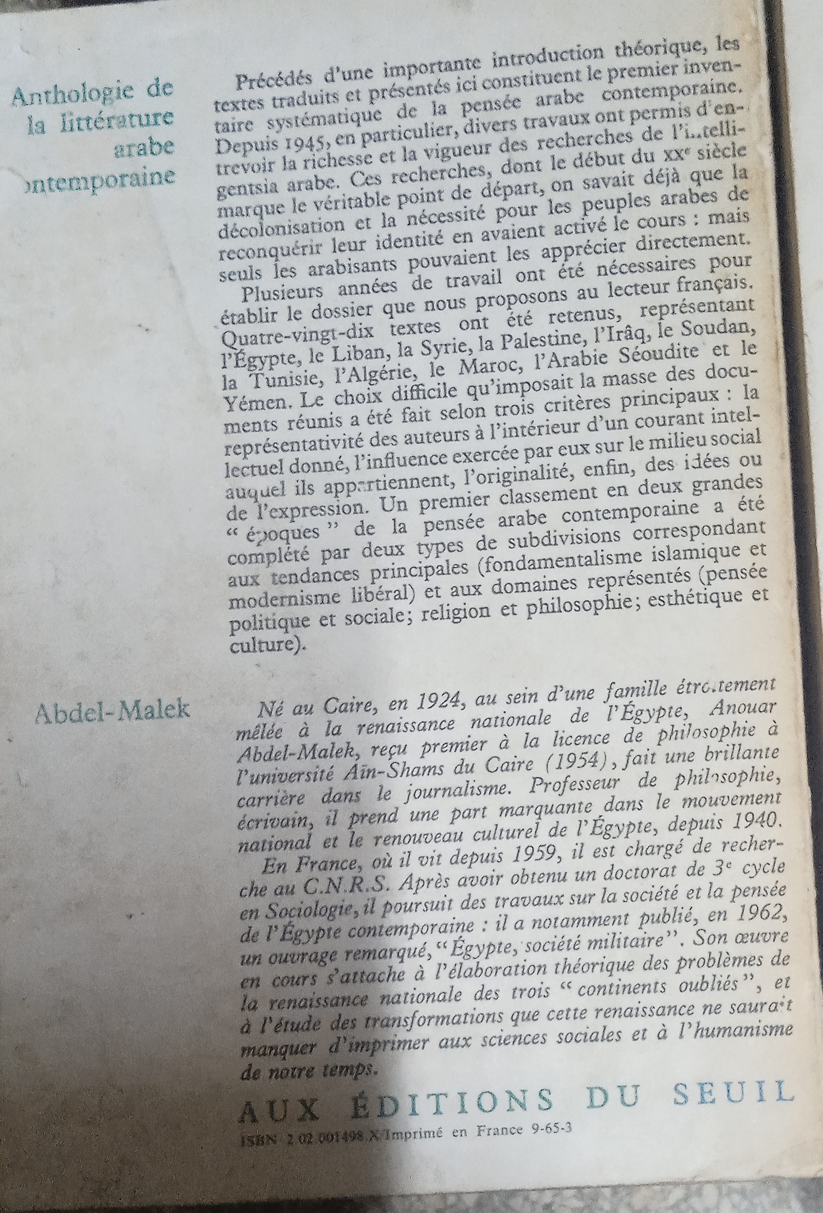 choix ,présentation, traduction et introduction par Anouar Abdel-Malek