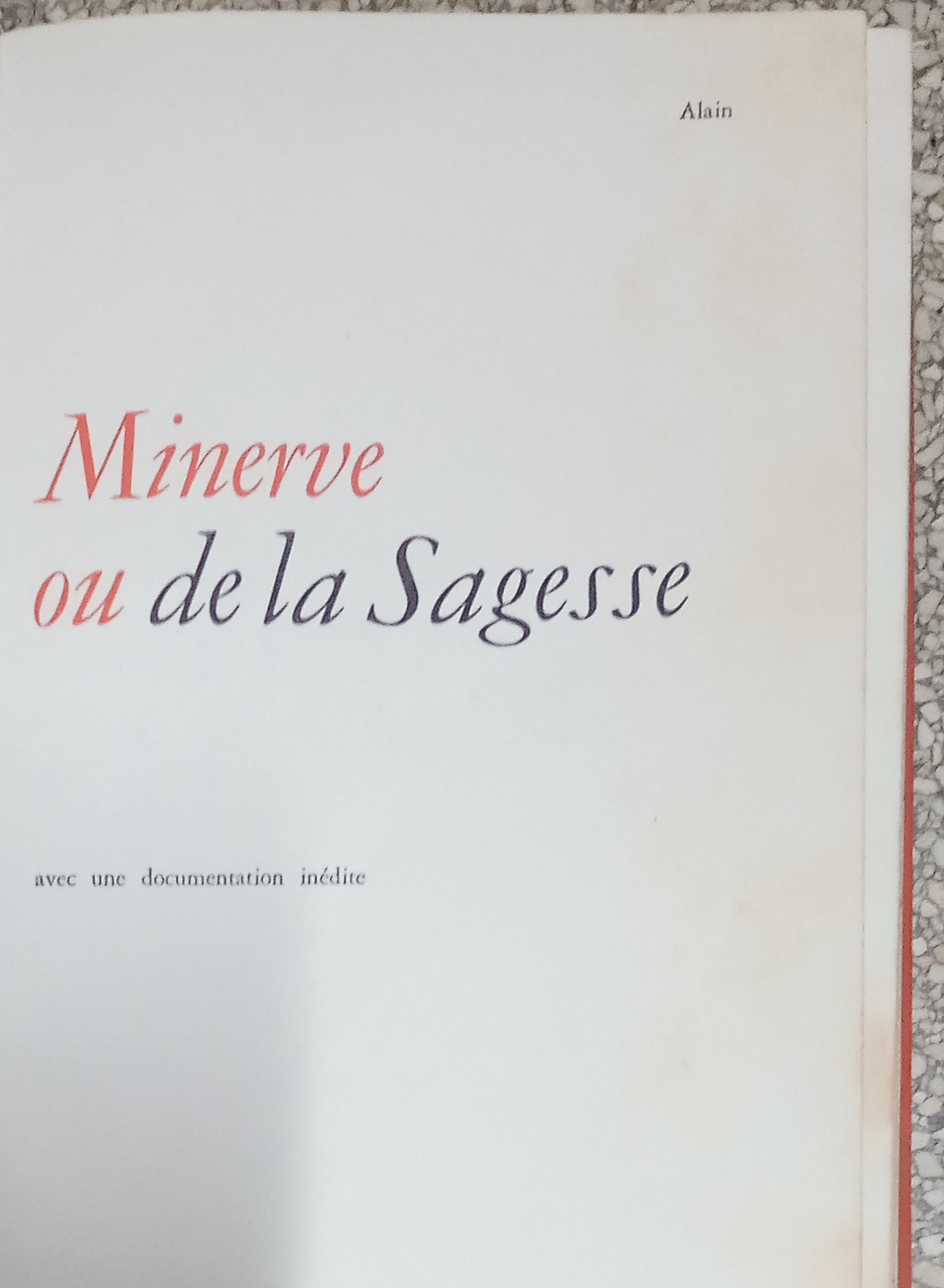ALAIN : Minerve ou la sagesse /édition club