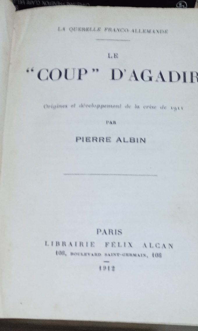Albin Pierre : Le coup d’ Agadir Origines et développement de la crise de 1911 – La querelle franco-allemande. /Felix Alcan 1912