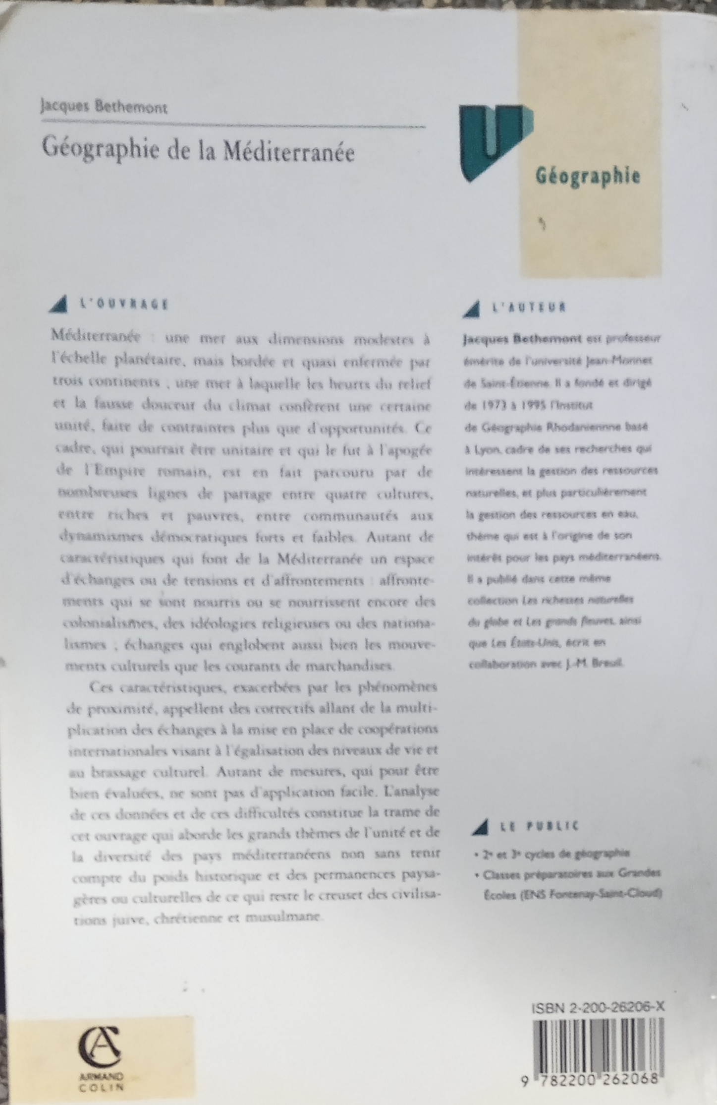 Bethemont Jacques ;Geographie de la mediiterranéé /armand colin 2000