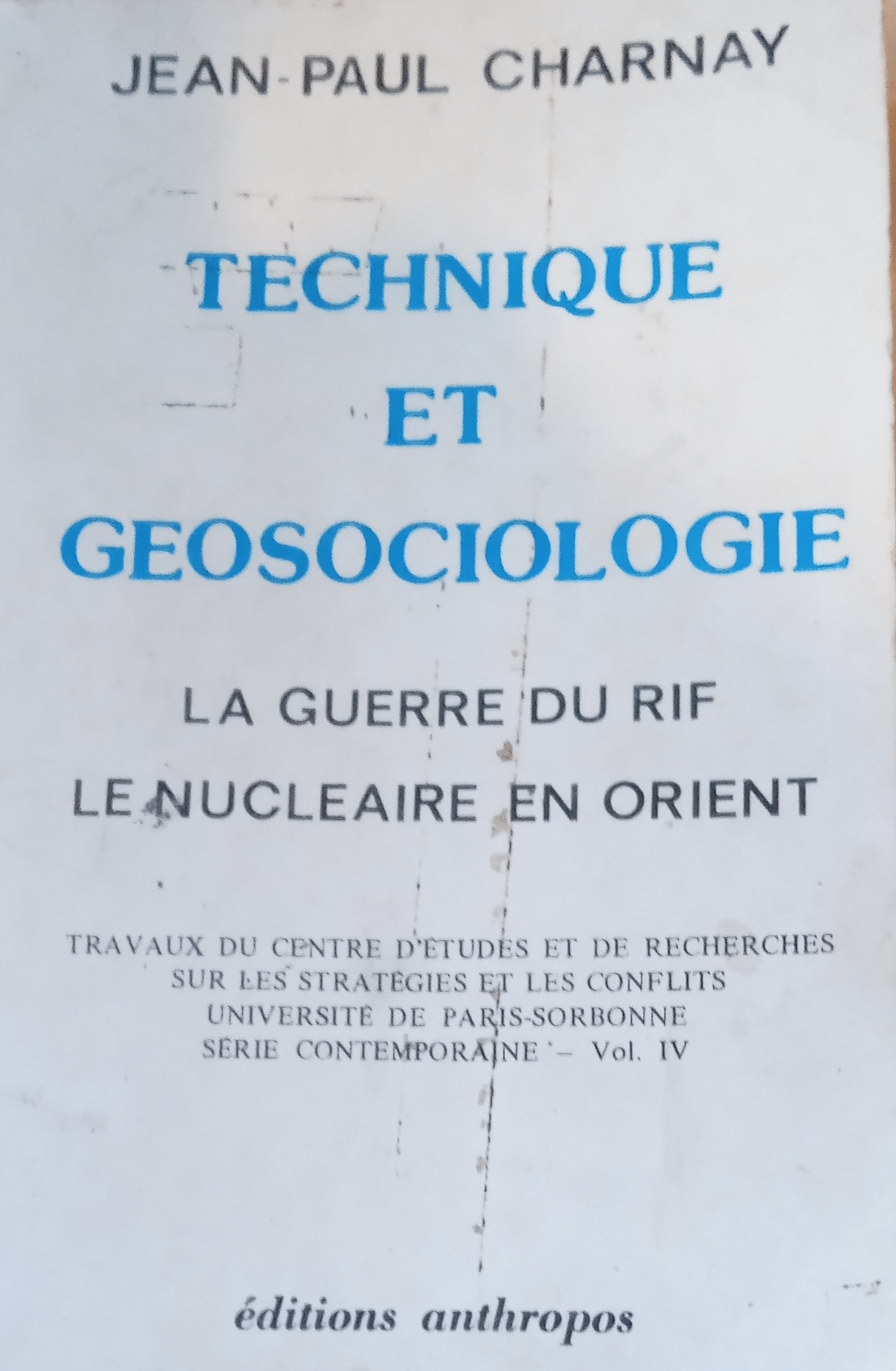 Charnay jean -paul :Technique et géo-sociologie. La guerre du Rif / Anthropos 1990