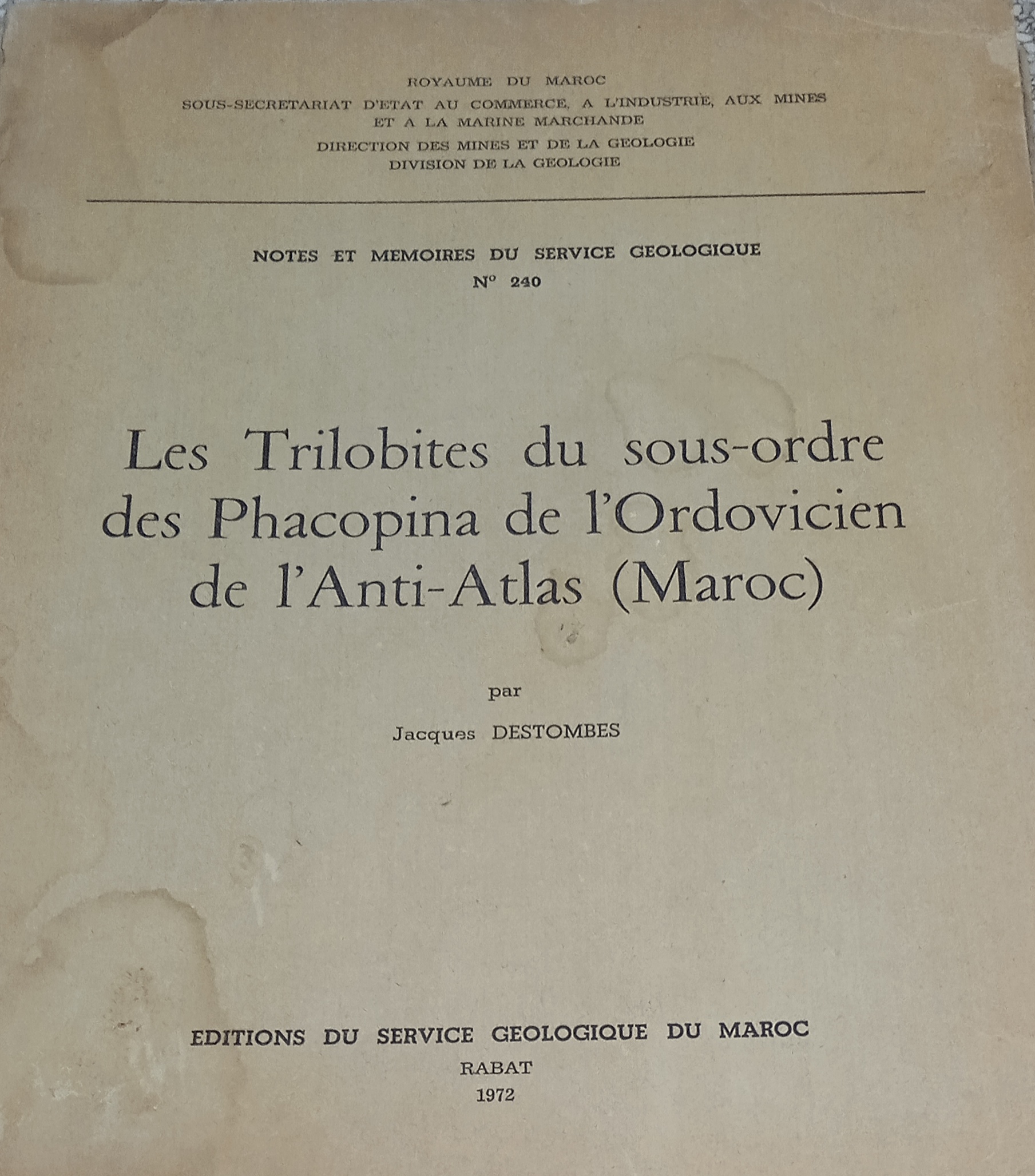 Destombes Jacques : Les trilobites sous-ordre des phacopina