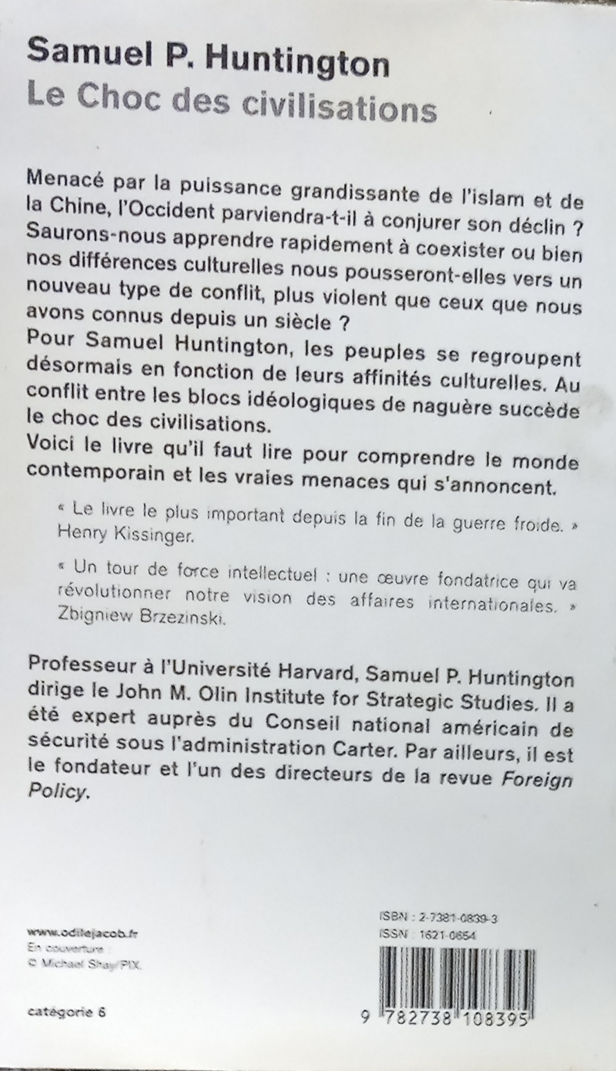 Huntington Samuel :Le choc des civilisations /Odile Jacob poche 2000