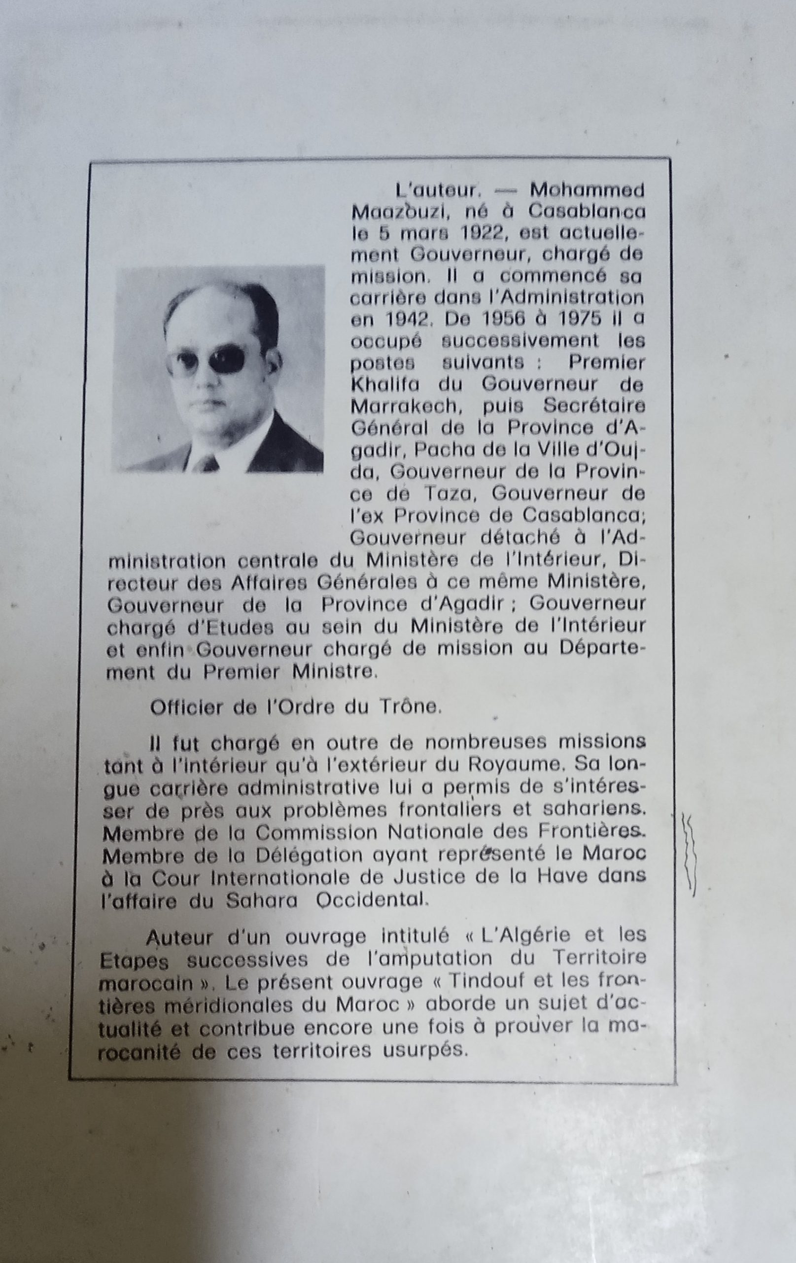 Maazouzi M: Tindouf et les frontières méridionales du Maroc/ dar Al kitab1976