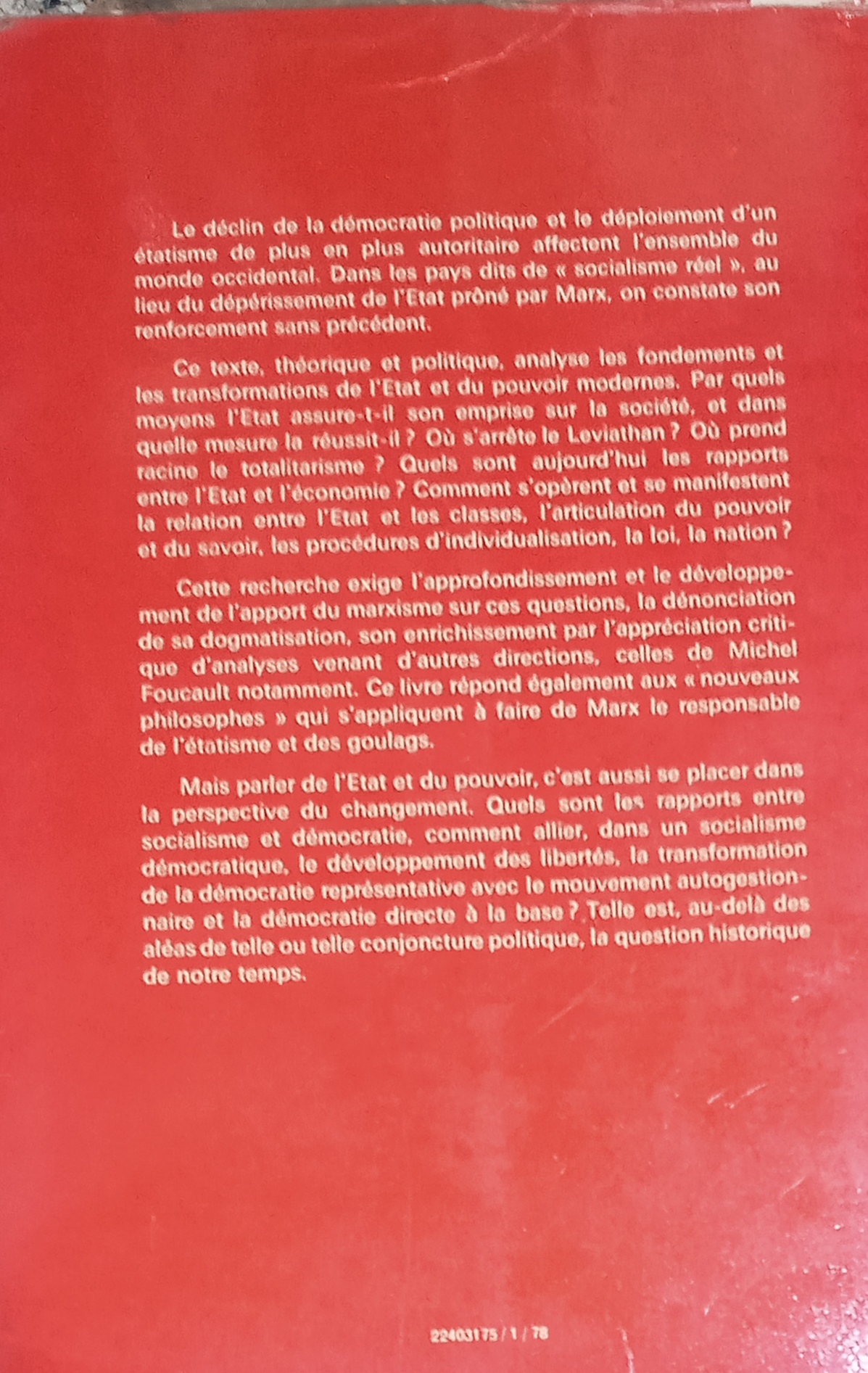 Poulantzas Nicos : L’état le pouvoir le socialisme /PUF 1978