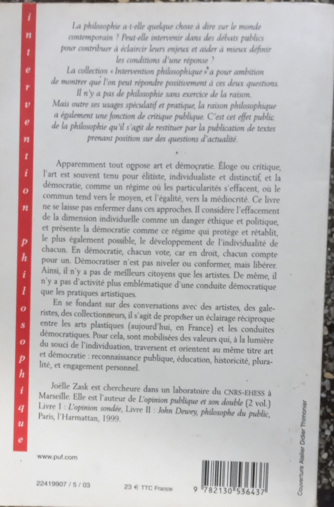 “Ce livre repose principalement sur des conversations avec des artistes, des galeristes et quelques collectionneurs… Les personnes consultées ne constituent ni un “échantillon représentatif” des milieux de l’art, ni un mouvement une tendance ou un courant… Tous font un travail différent et dans une certaine mesure exemplaire.